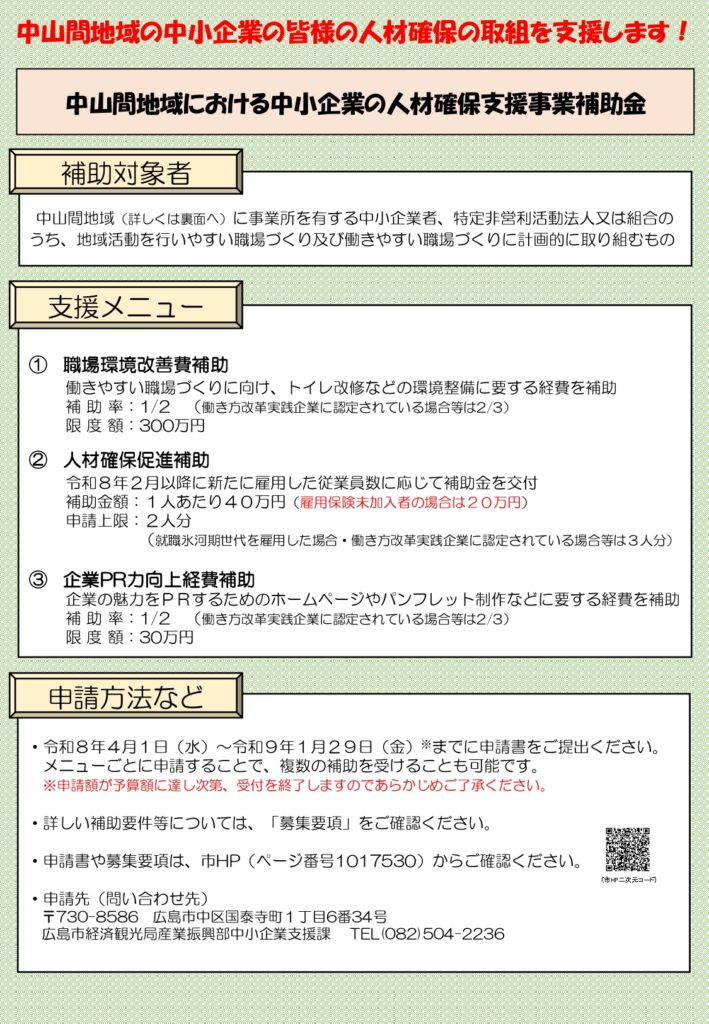 地域活動を行いやすい職場づくりや働きやすい職場づくりに取り組む中小企業に対して下記の支援を行います。